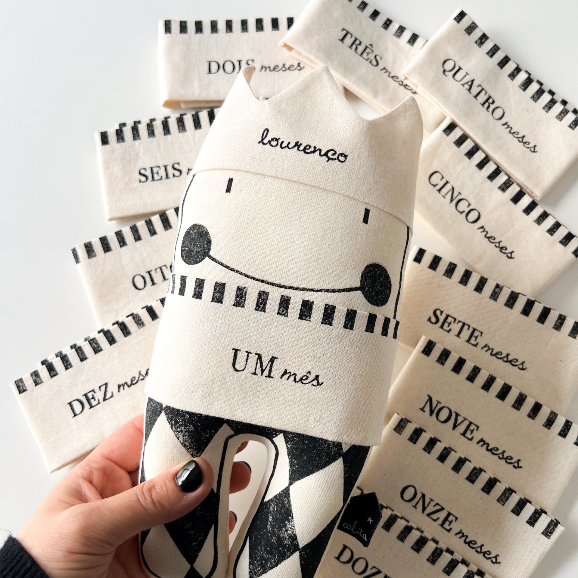 BFF do bebé personalizado e c/contagem dos meses 69,50 € Desconto de %. Partilhar Cor Preto Rosa Velho Cinza Verde Água Verde Bege claro Bege Escuro Amarelo torrado Dourado Azul claro Azul escuro Comprar Contactar INCLUI: boneco + coroa personalizada com o nome do bebé + 12 camisolas com a contagem dos meses Tecido 100% algodão orgânico Impresso manualmente com tintas ecológicas Enchimento hipoalergénico Lavável à máquina máx. 30ºC Medidas: 25cm x 11,5cm Marca Calita Tags bonecosbonecos criativosbonecos feitos à mãobonecos originaiscriatividadecriançasdesigndesign para criançasdecoraçãokidskids decorestamparia manualfeito à mãocarimbos artesanaismarca portuguesaartesanalmilestonesmilestones cardsbff do bebénascimentoboneco para bebébonecos personalizadospersonalizado Características